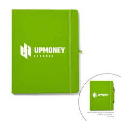 Whether you're taking notes at a meeting, brainstorming ideas or journaling with your thoughts, the soft touch journal is the perfect tool for you. This notebook features a color-coordinated elastic band closure, ribbon bookmark and pen loop. Each journal measures 8" x 10" and has a cover made of PVC that's available in several fantastic colors.